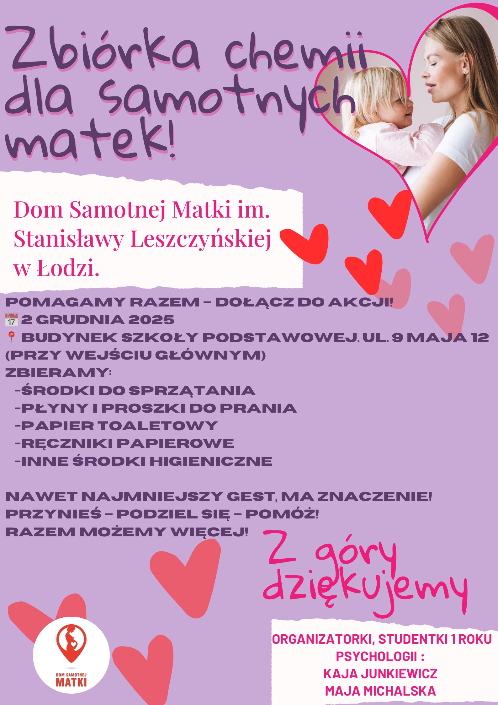 z inicjatywy naszych absolwentek. Artykuły można przynosić do budynku przy ul. 9 Maja 12.