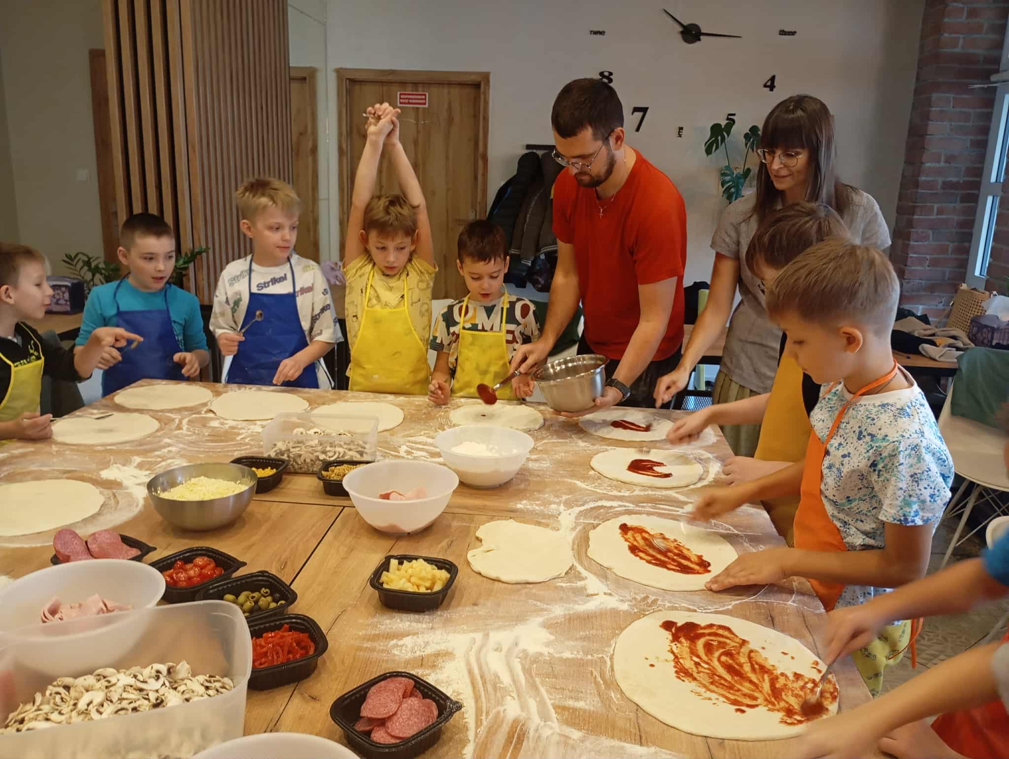 Dnia 14.10.2025 klasa 2d wybrała się z wychowawcą na zajęcia warsztatowe do pizzerii k2. Dzieci dowiedziały się jak od podstaw robi się pizzę i mogły samodzielnie stworzyć swoją własną kompozycje. Na zakończenie warsztatów usiedliśmy wspólnie do skosztowania swojej własnej pizzy. Uczniowie przygotowali również piękną i pyszną pizzę dla wychowawcy w kształcie serca.