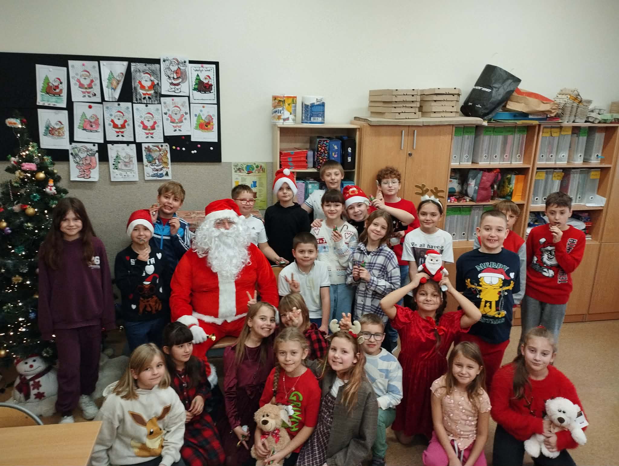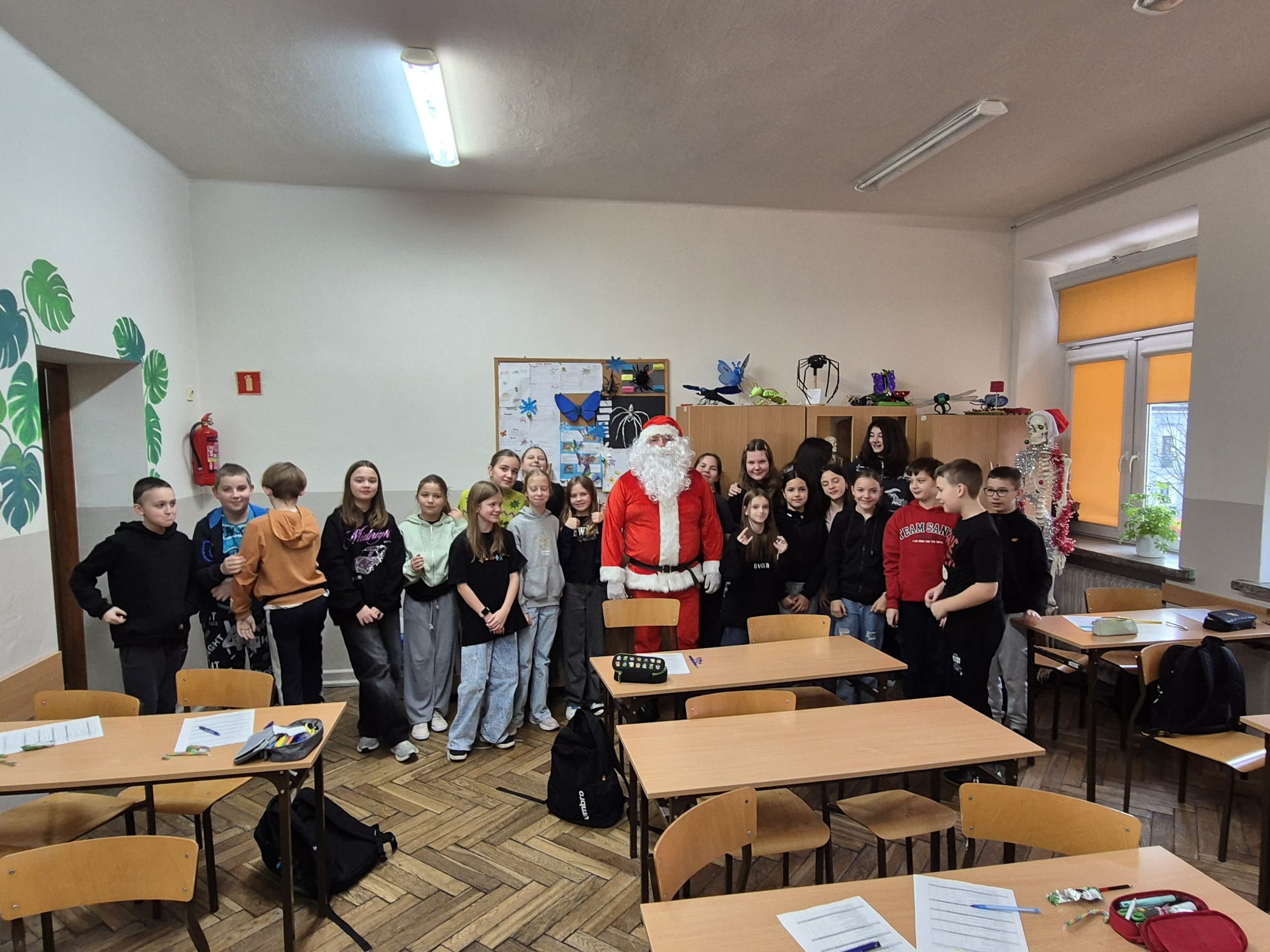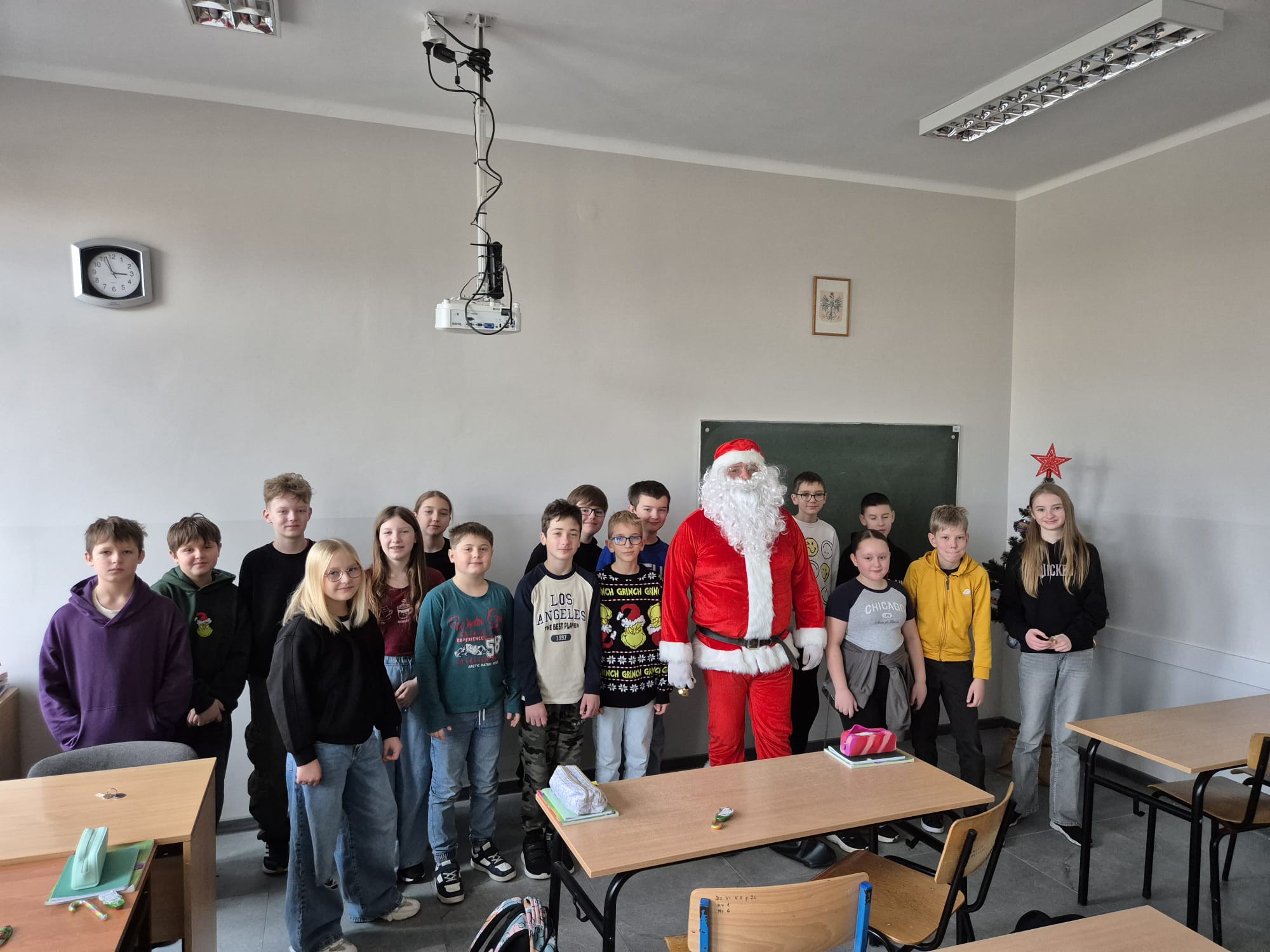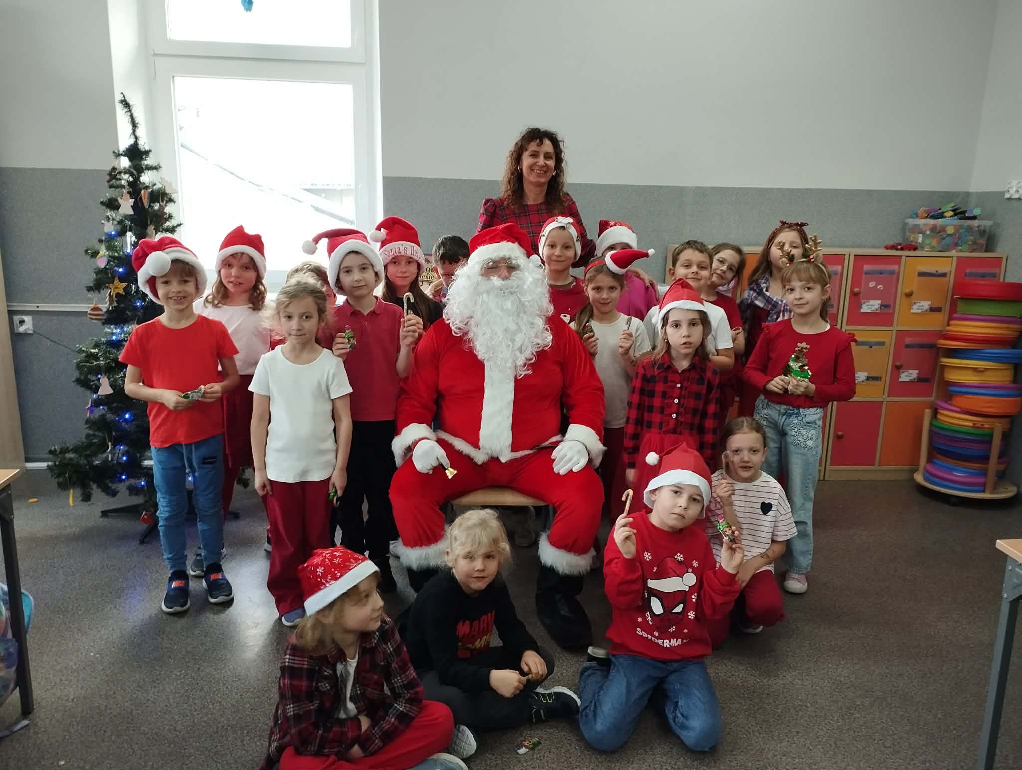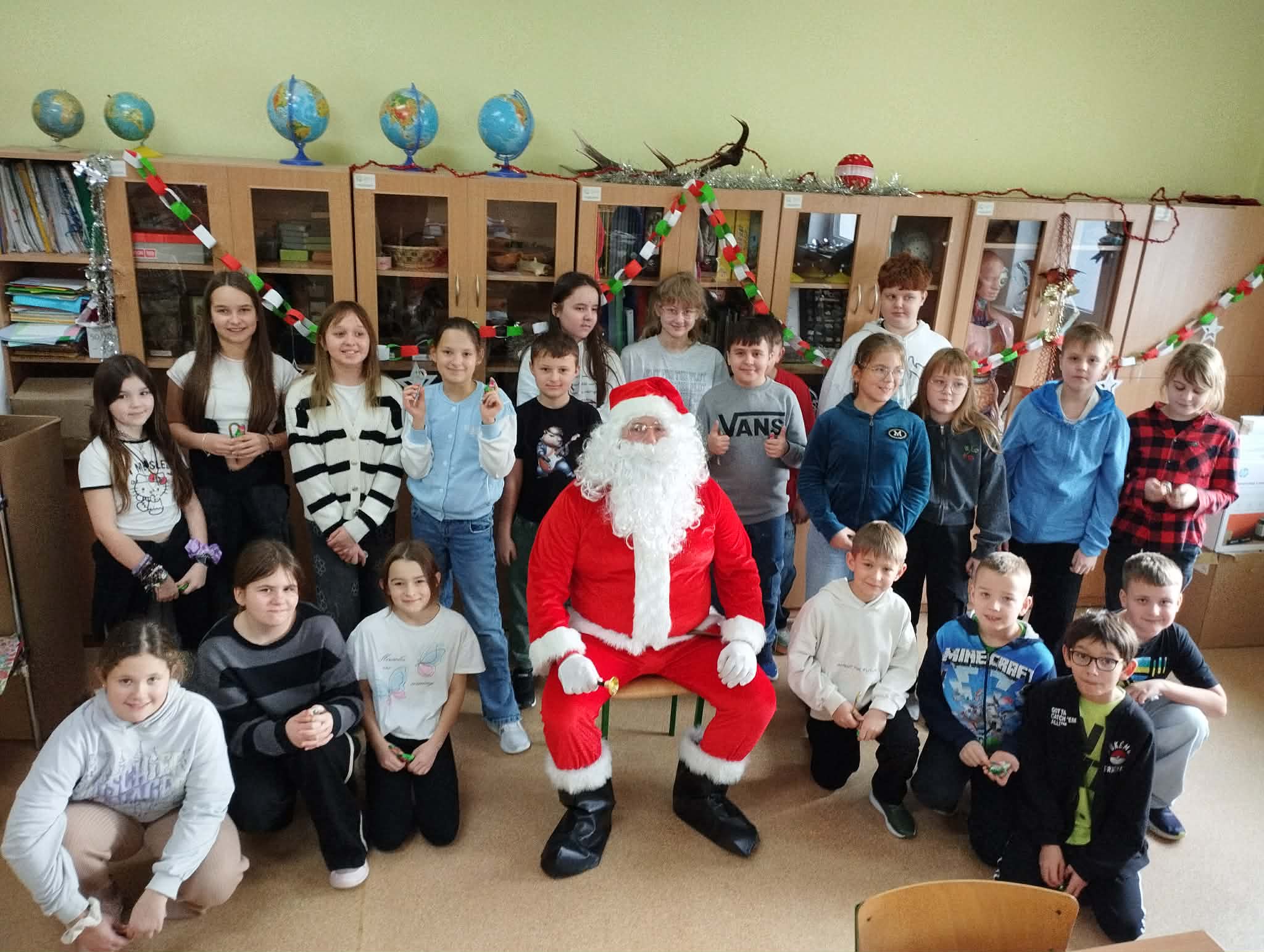 Dziś naszą szkołę spotkała prawdziwa, mikołajkowa sensacja! Dokładnie w chwili, gdy wszyscy zaczęliśmy się zastanawiać, czy renifery znają drogę do naszej miejscowości, do klas zawitał sam Święty Mikołaj – w czerwonym stroju, z bujną brodą i workiem tak wielkim, że nie zmieściłby się nawet do szkolnej szatni. Towarzyszyli mu jego wierni pomocnicy, którzy z ogromnym entuzjazmem roznosili słodkie upominki