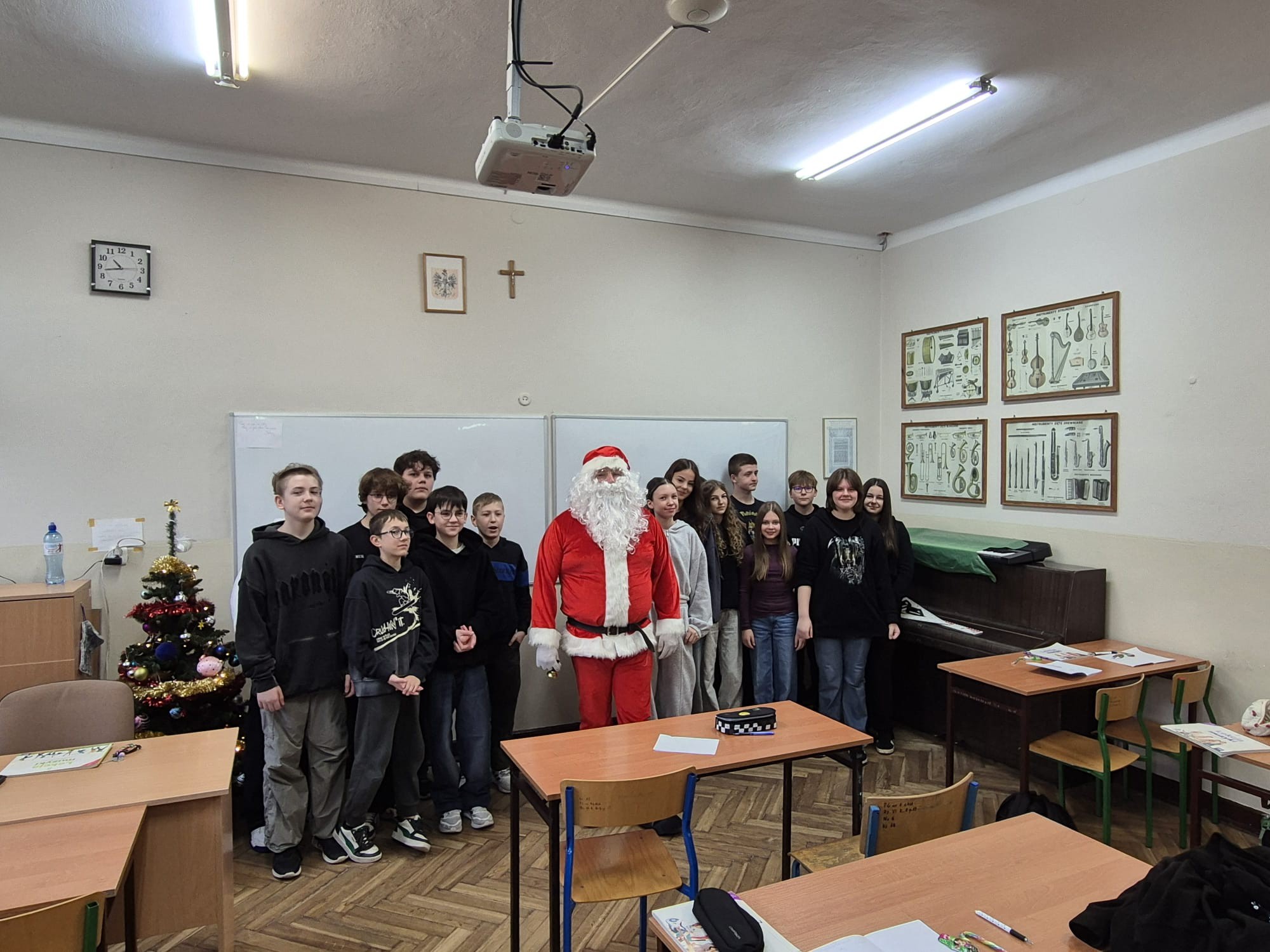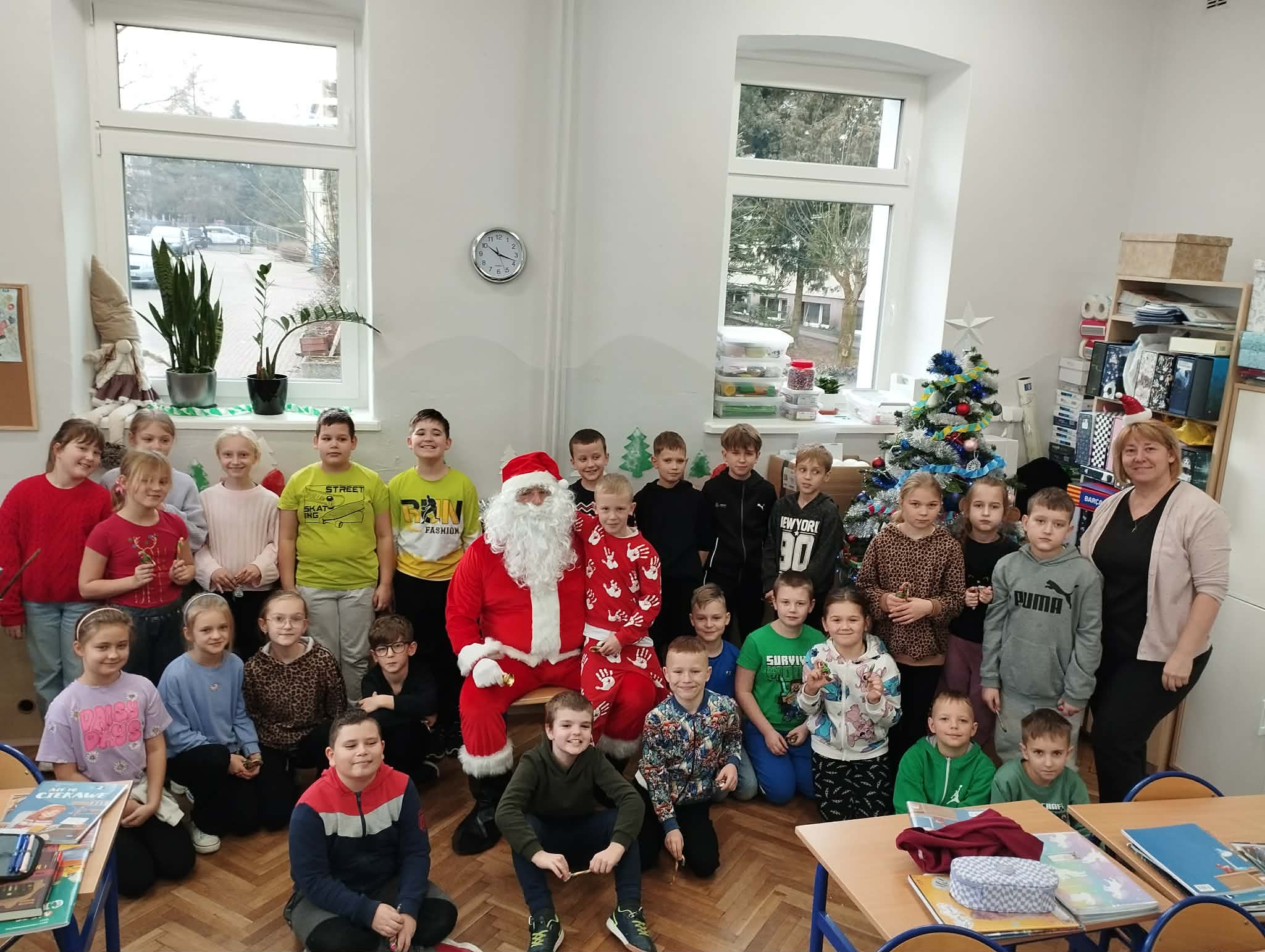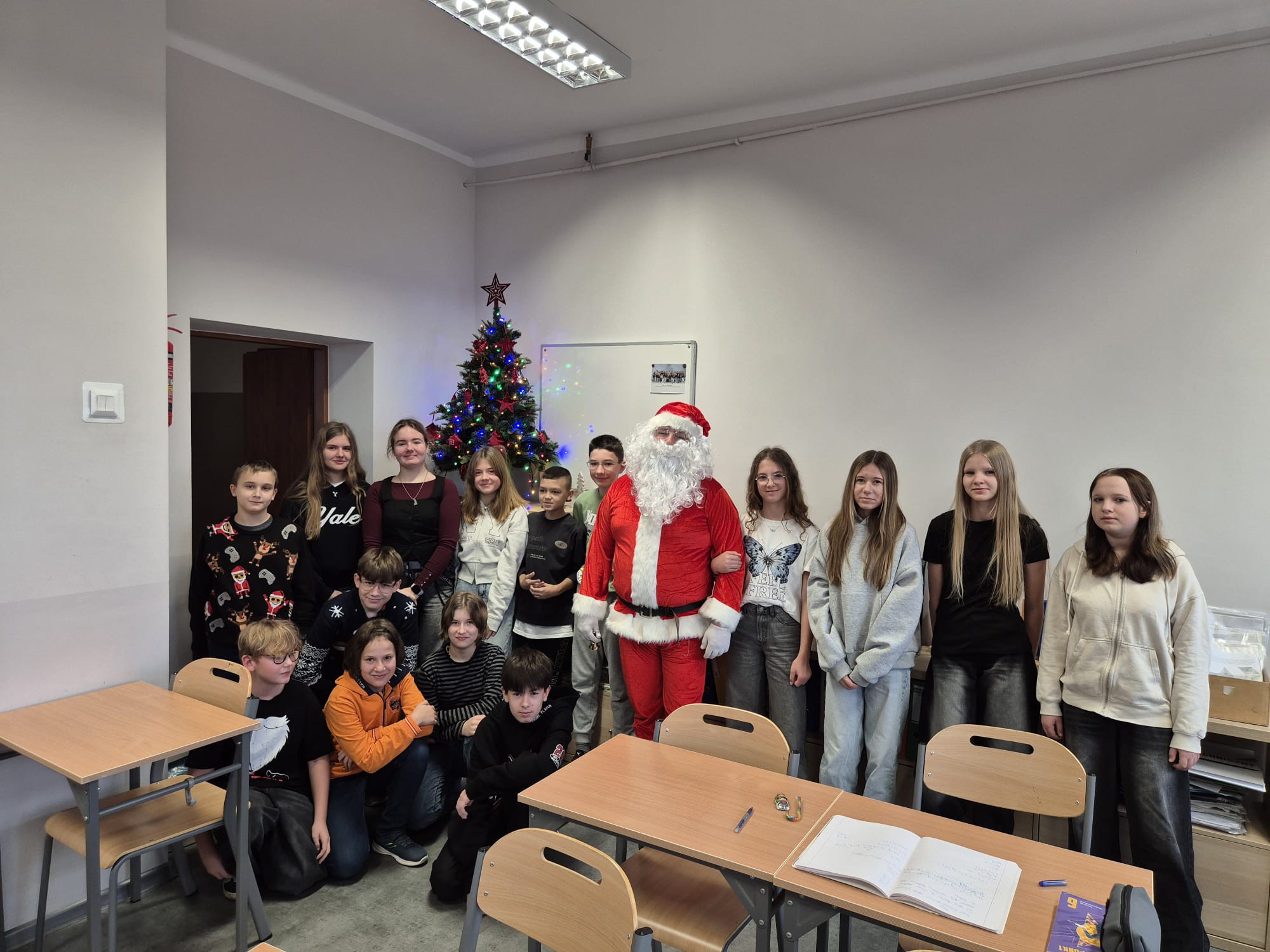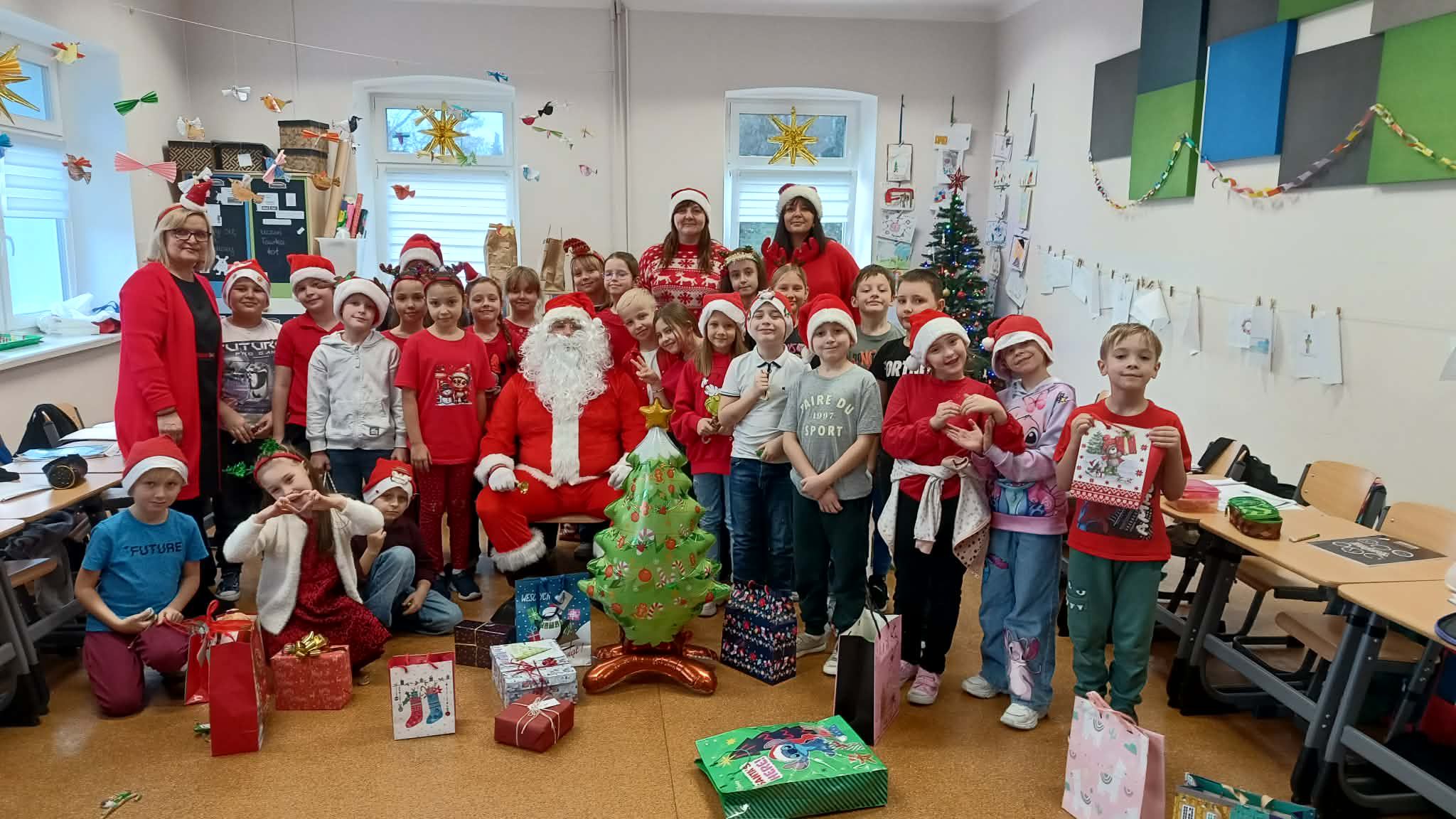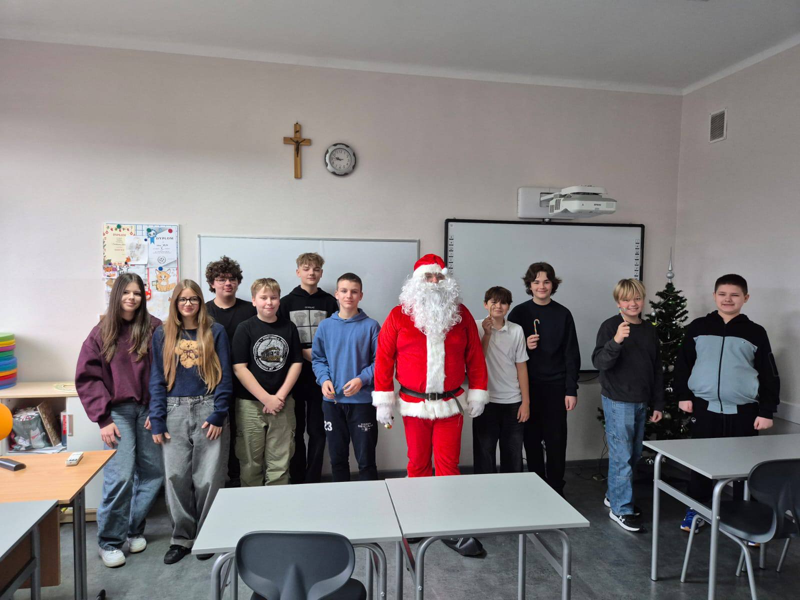 Dziś naszą szkołę spotkała prawdziwa, mikołajkowa sensacja! Dokładnie w chwili, gdy wszyscy zaczęliśmy się zastanawiać, czy renifery znają drogę do naszej miejscowości, do klas zawitał sam Święty Mikołaj – w czerwonym stroju, z bujną brodą i workiem tak wielkim, że nie zmieściłby się nawet do szkolnej szatni. Towarzyszyli mu jego wierni pomocnicy, którzy z ogromnym entuzjazmem roznosili słodkie upominki