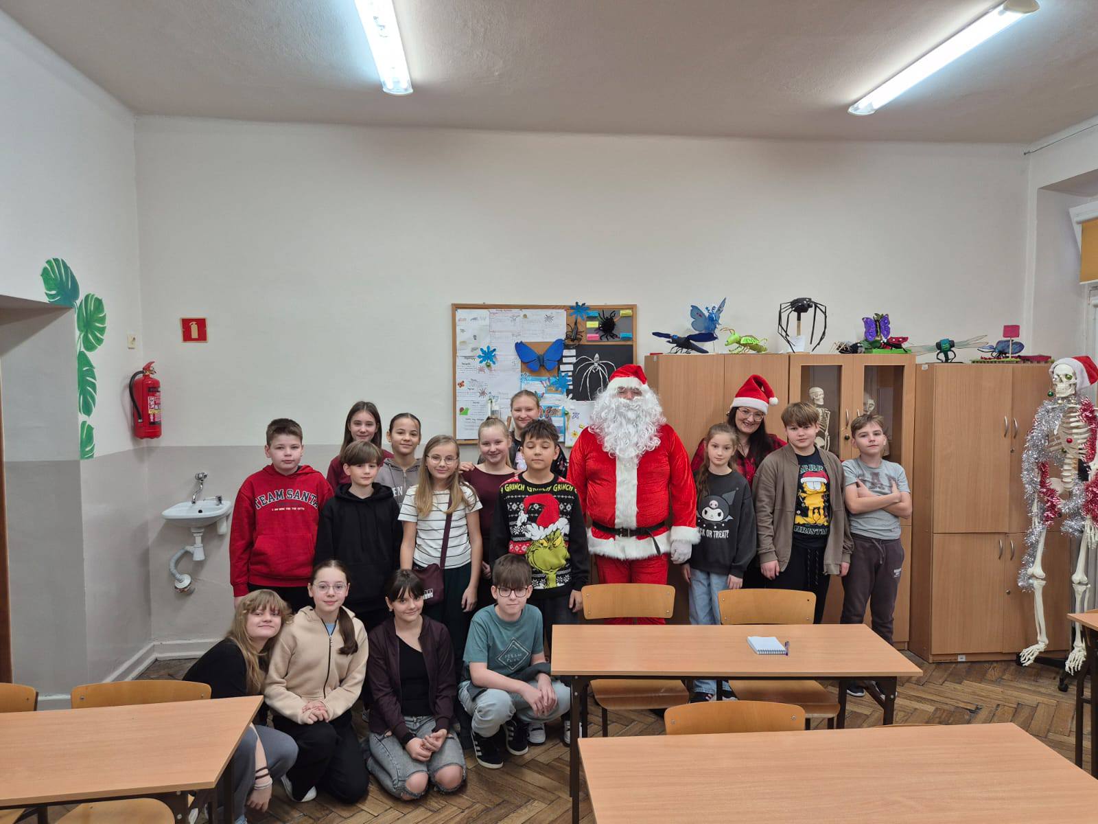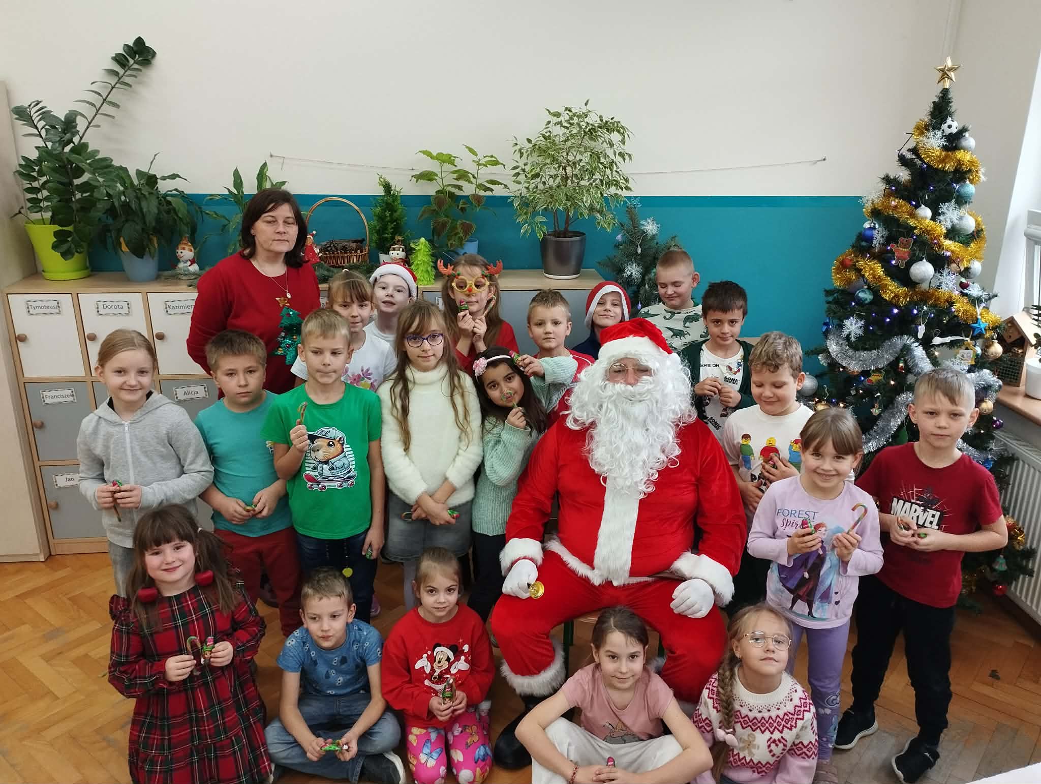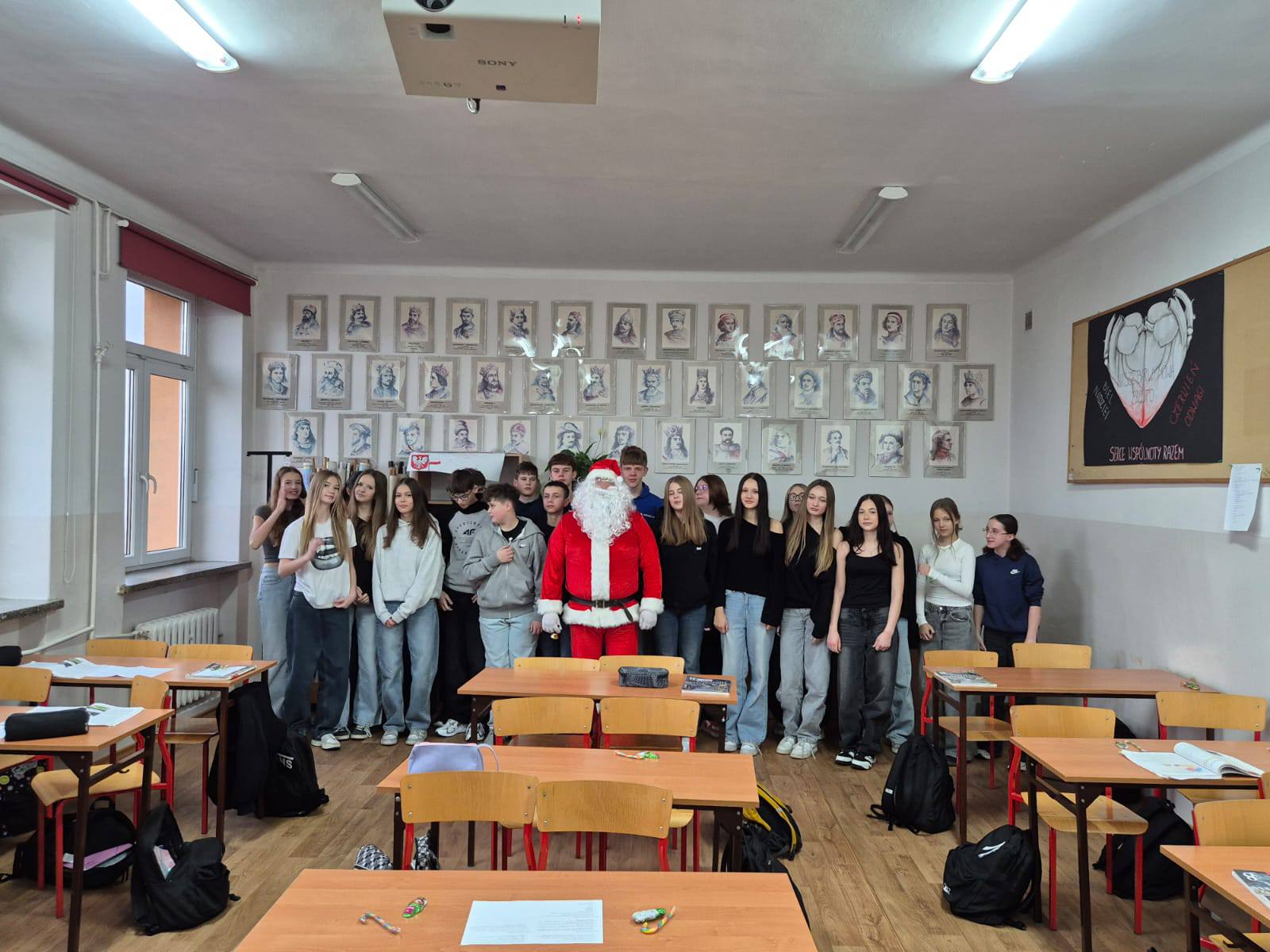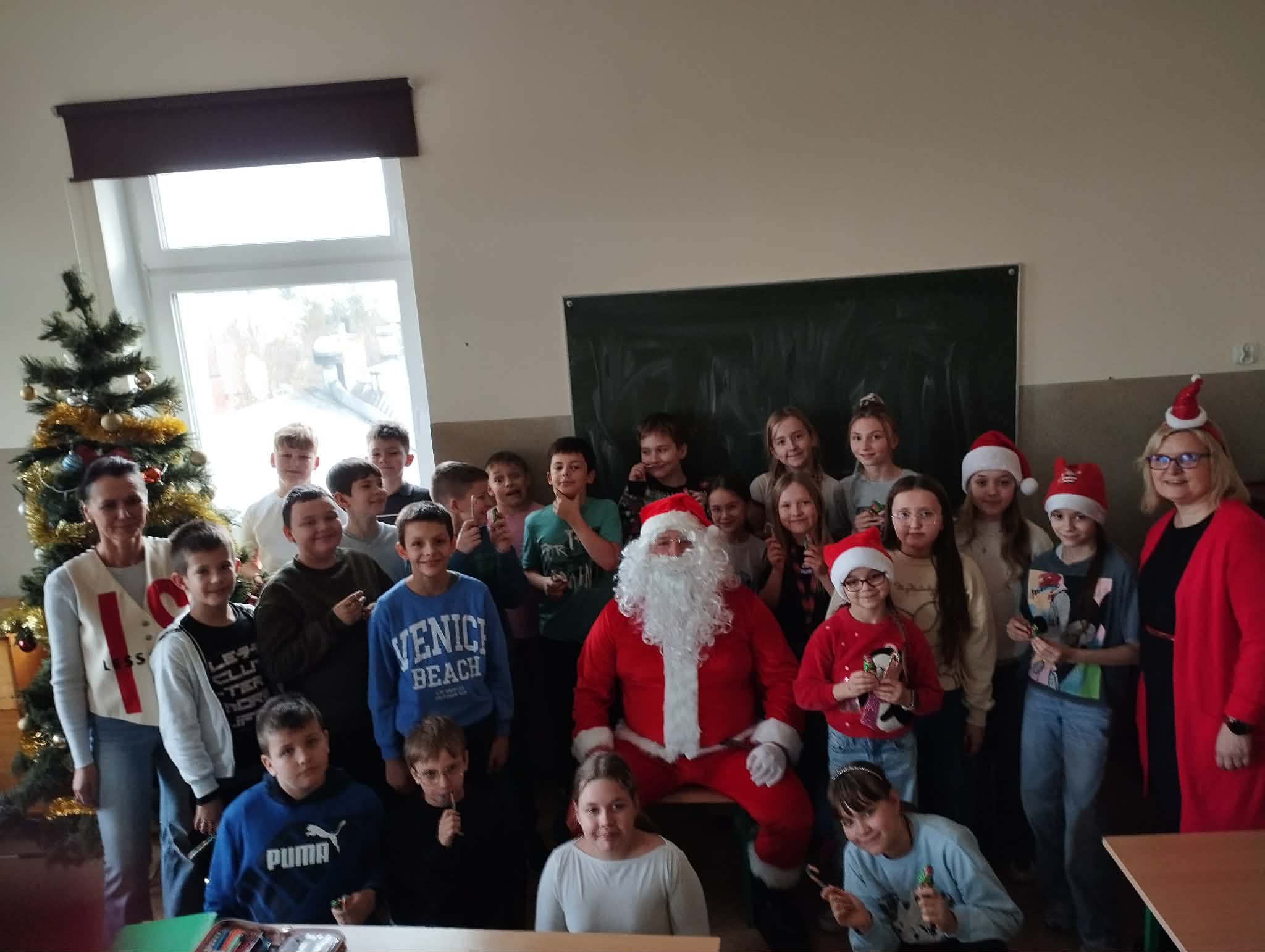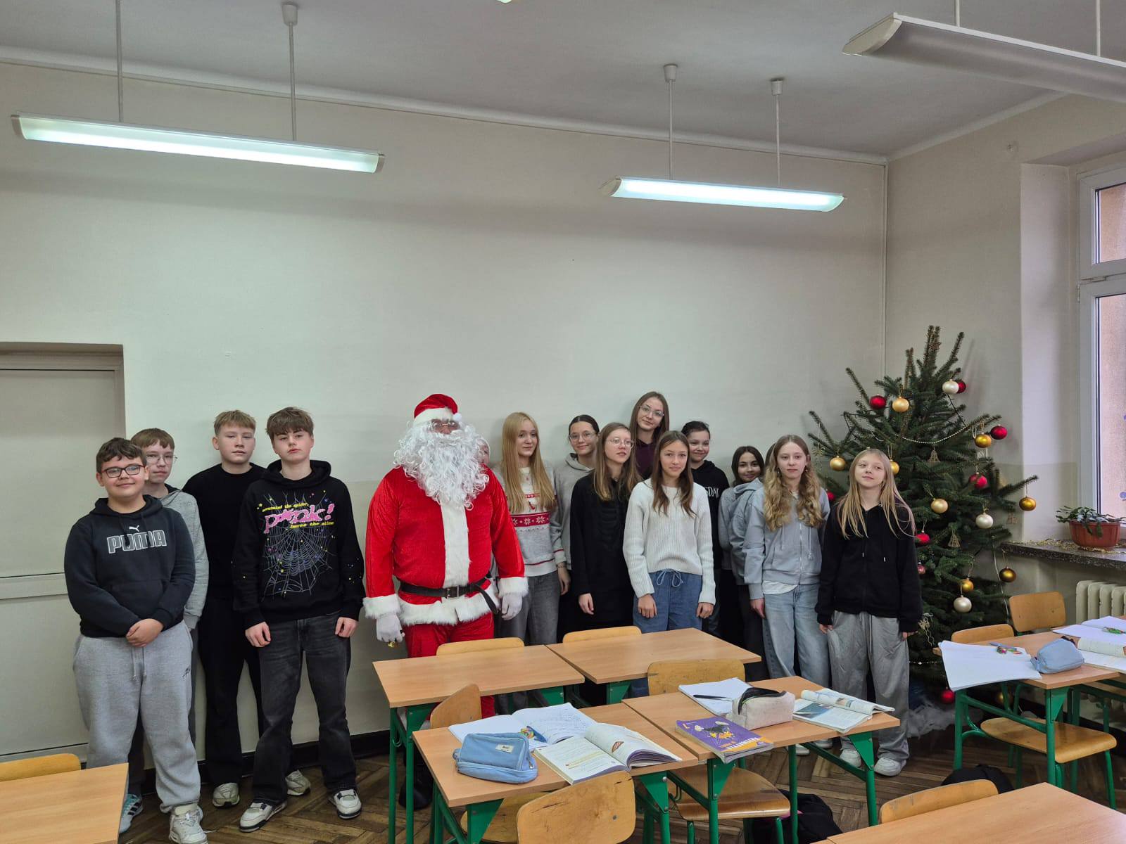 Dziś naszą szkołę spotkała prawdziwa, mikołajkowa sensacja! Dokładnie w chwili, gdy wszyscy zaczęliśmy się zastanawiać, czy renifery znają drogę do naszej miejscowości, do klas zawitał sam Święty Mikołaj – w czerwonym stroju, z bujną brodą i workiem tak wielkim, że nie zmieściłby się nawet do szkolnej szatni. Towarzyszyli mu jego wierni pomocnicy, którzy z ogromnym entuzjazmem roznosili słodkie upominki