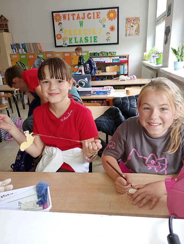 Wczoraj klasa III a na zajęciach świetlicowych wzięła udział w mini warsztatach jesiennych. Uczniowie z ogromną dokładnością i starannością przygotowali "jesienne przywieszki".