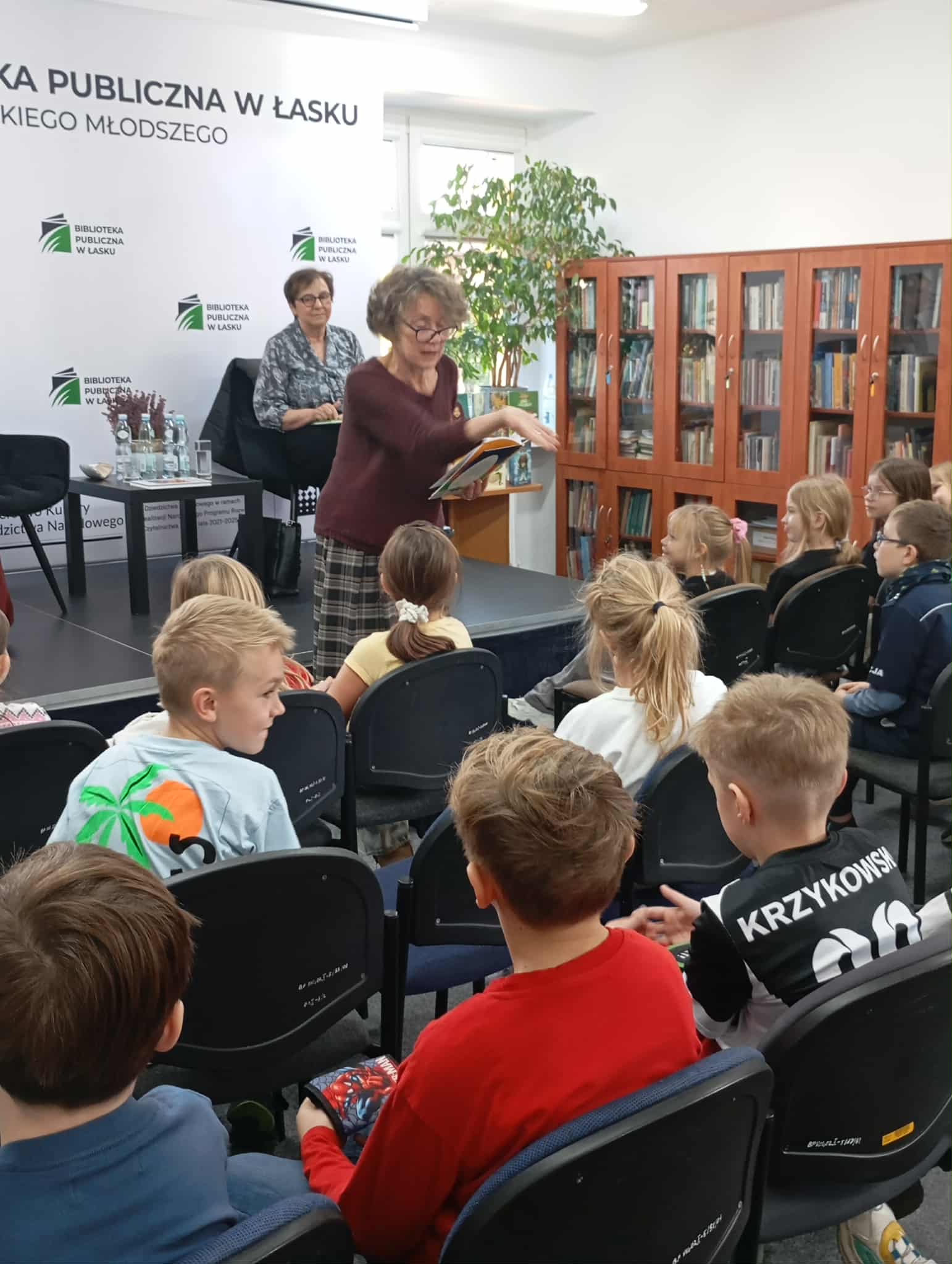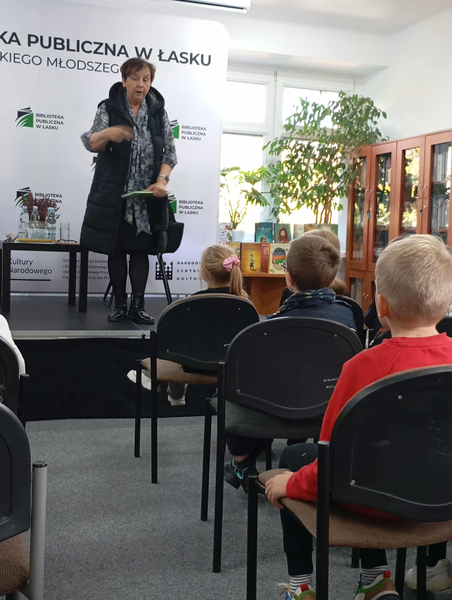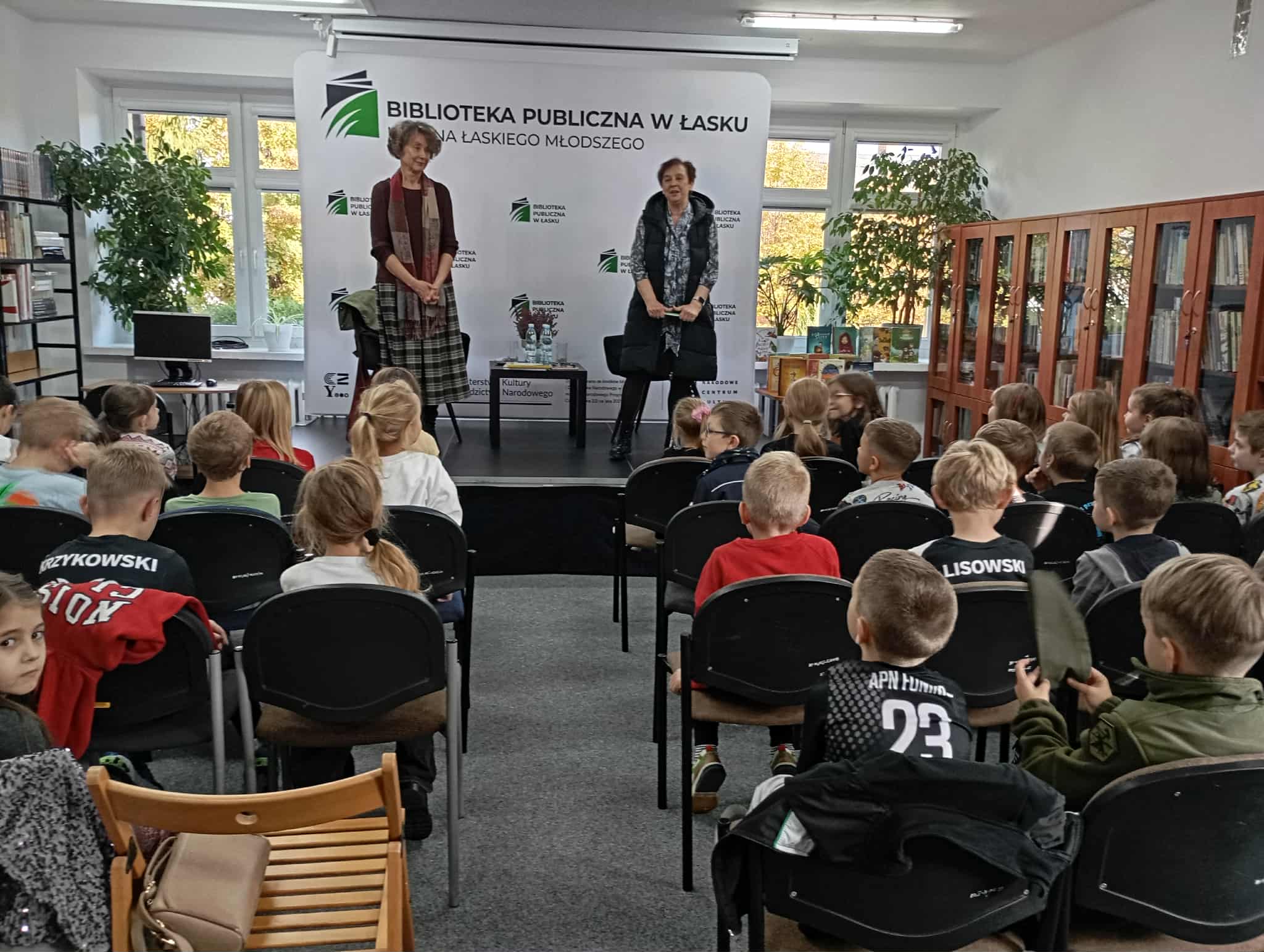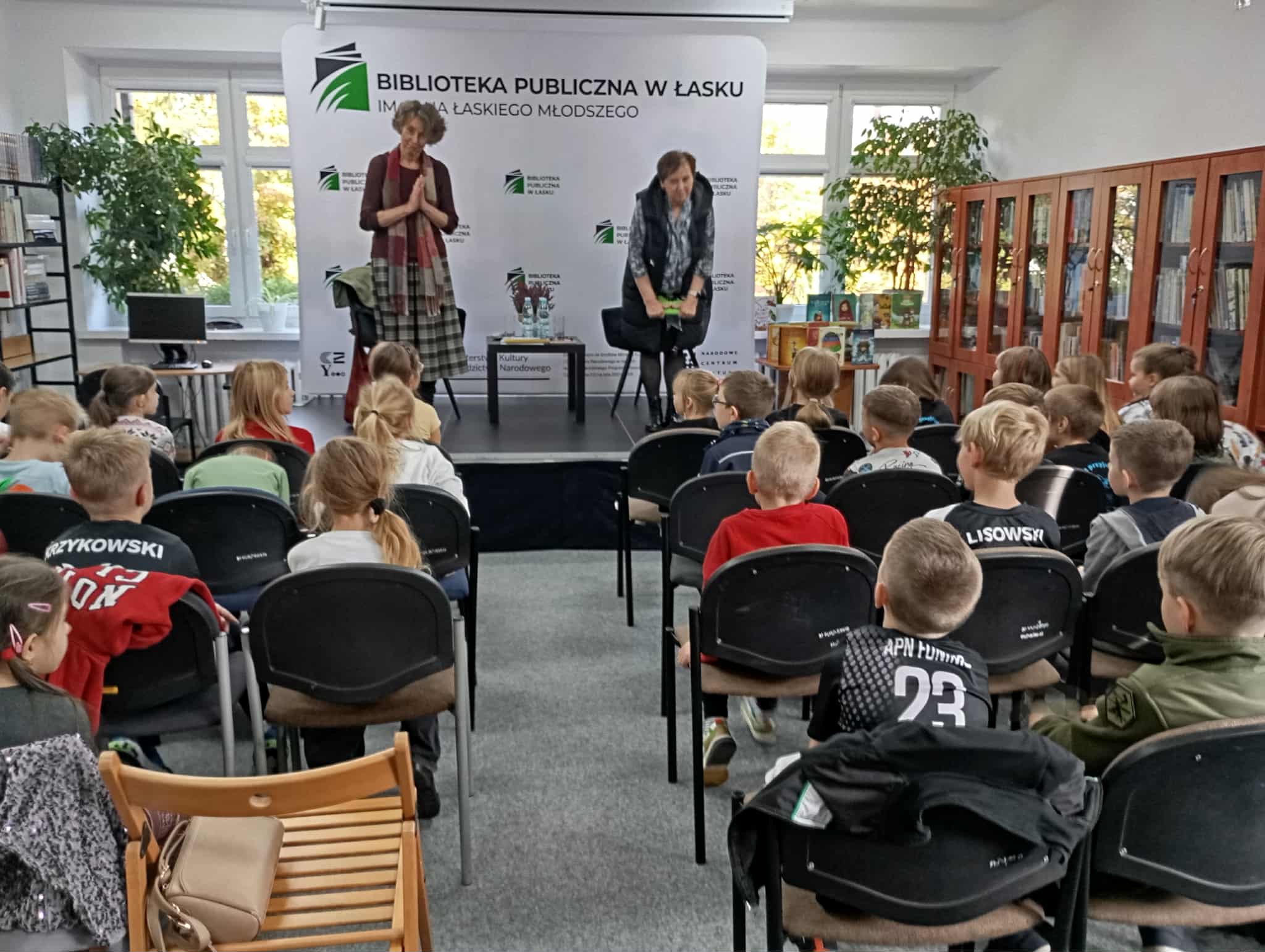 W dniu 22.10.2025 klasa 2c i 2d miały możliwość uczestniczyć w spotkaniu autorskim w Łaskiej Bibliotece Publicznej. Było to spotkanie z autorką książek dla dzieci panią Renatą Piątkiewicz. Podczas spotkania dzieci mogły zapoznać się z zwyczajami i przysłowiami Polskimi, które autorka przedstawiła w niektórych swoich książkach.